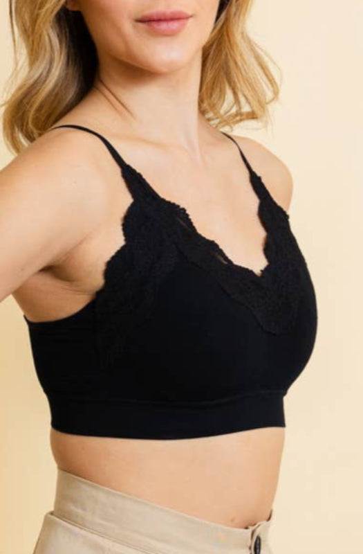 comfort lace trim bralette - black