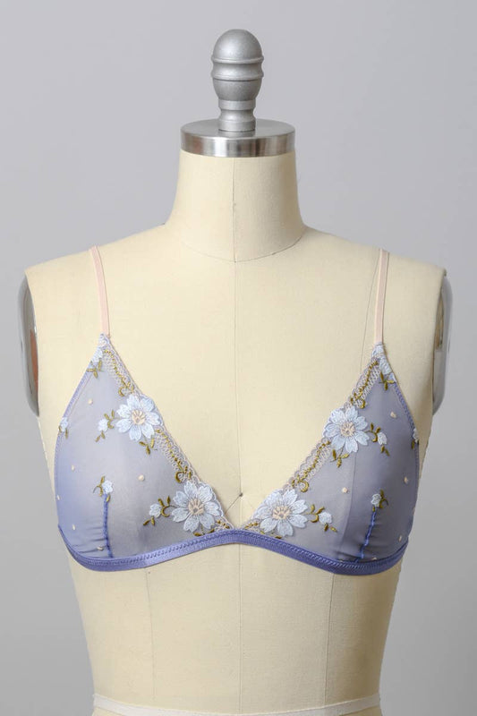daisy embroidered bralette - periwinkle
