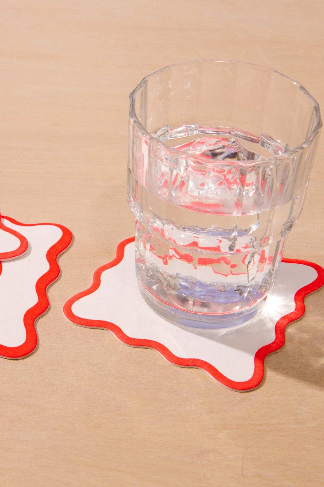 our vibrant, modern coasters are letterpress printed on durable and absorbent vellum. vellum coasters won’t get soggy, break down or tear apart like wood-pulp paper coasters.