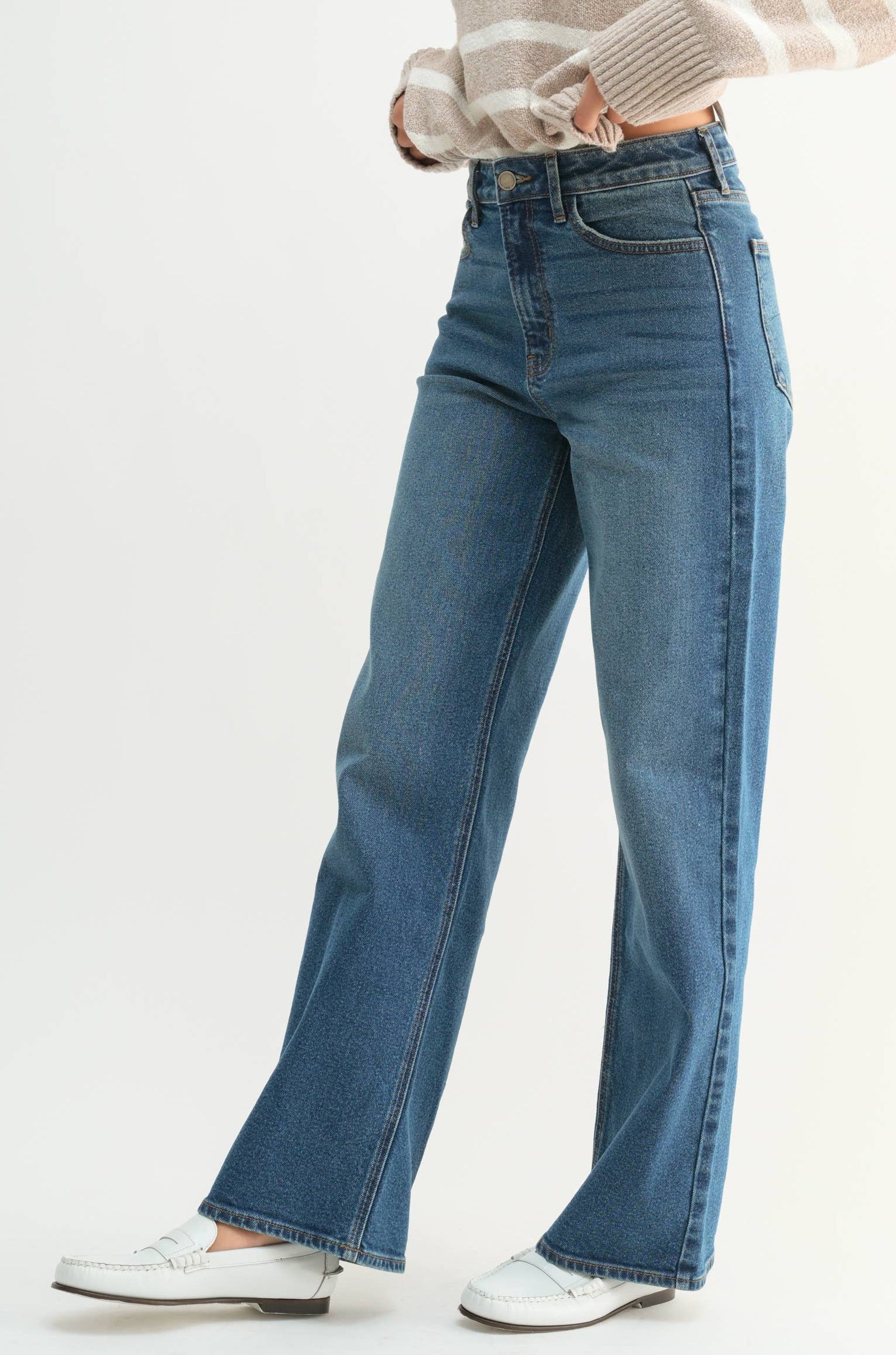 high rise full length straight cut jean