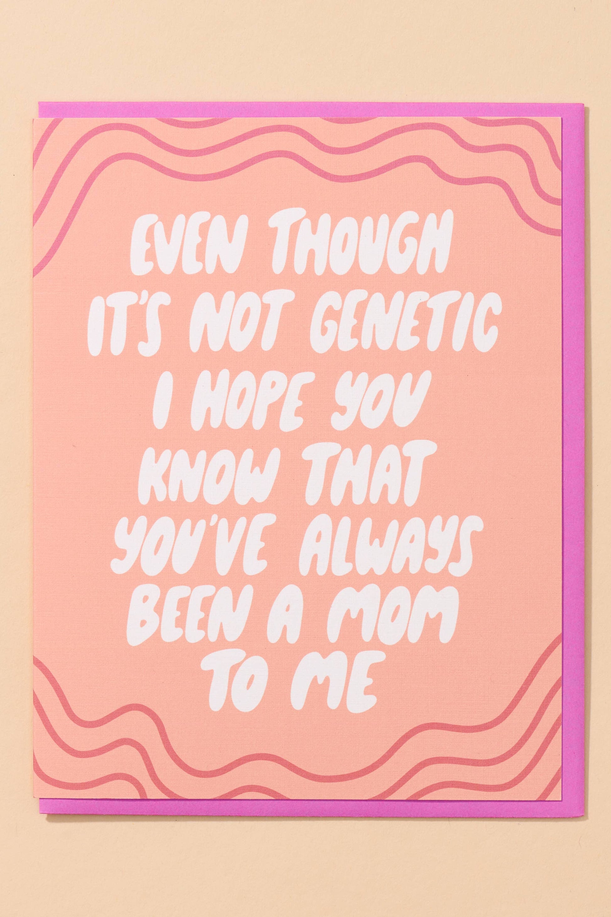 - Card reads, “Even though it's not genetic I hope you know that you've always been a mom to me”