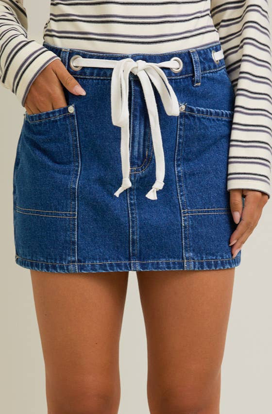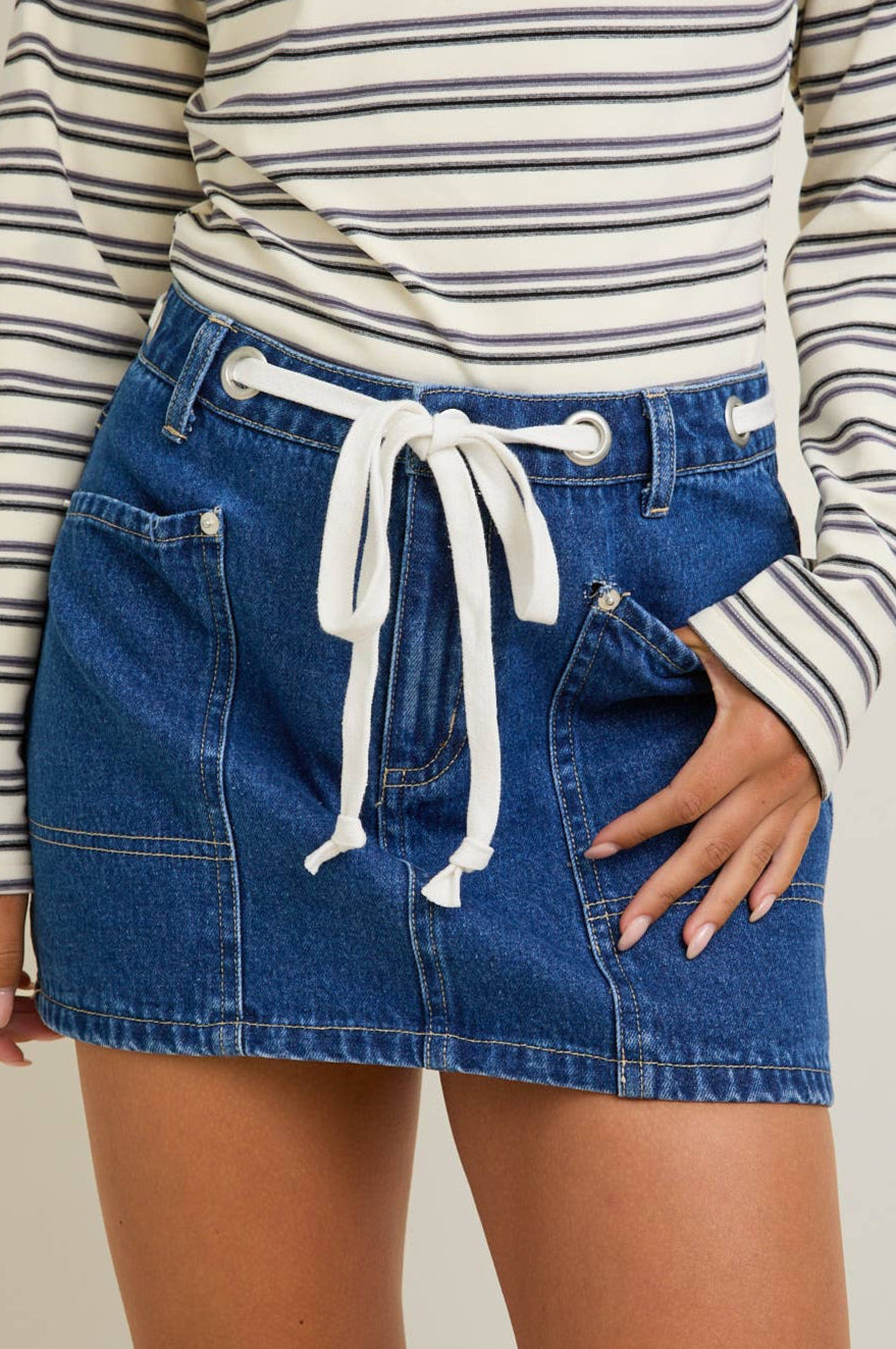 mid waist grommet detail mini skirt